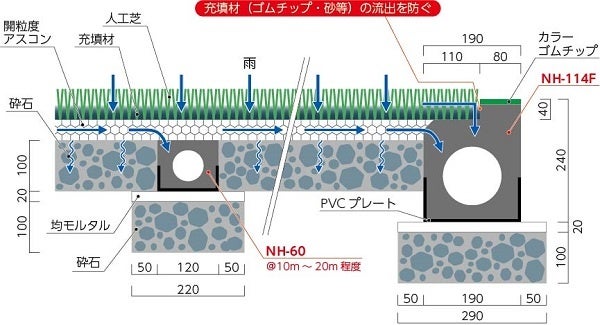 NHドレーンを用いた人工芝グラウンドにおけるマイクロプラスチックの流出抑制技術 |