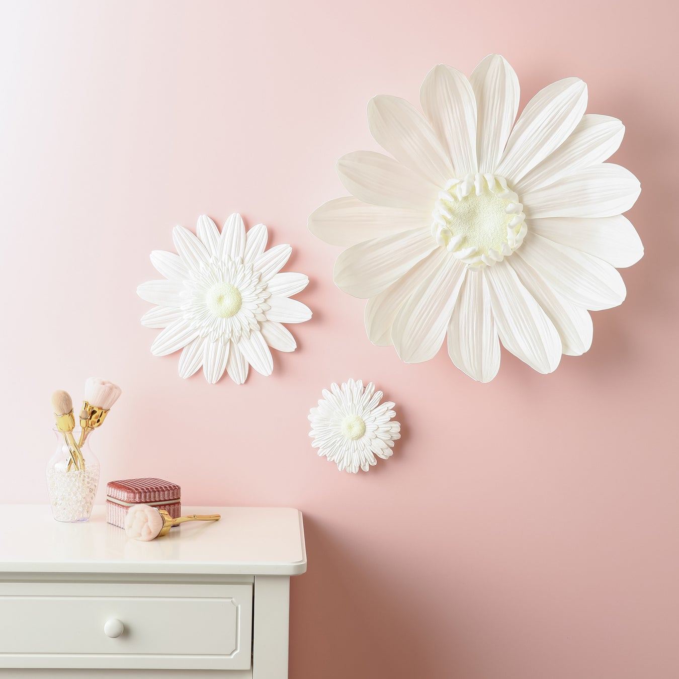 引っ掛けるだけで簡単にお部屋を飾ることができる立体的なフラワーオブジェです。花びらはスポンジのような柔らかく軽い素材で出来ているのでお子さまのお部屋でも安全に取り付けることができます。裏側にはフックとクリップが付属しているので、壁だけでなくカーテンなどもデコレーションできます。