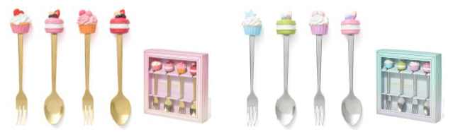 おいしそうなスイーツのモチーフがかわいいカトラリーのセットです。フルーツやスイーツにぴったりでテーブルに出すだけで会話も弾むユニークなアイテムです。スプーンはコーヒーや紅茶のマドラーとしてもお使いいただけます。