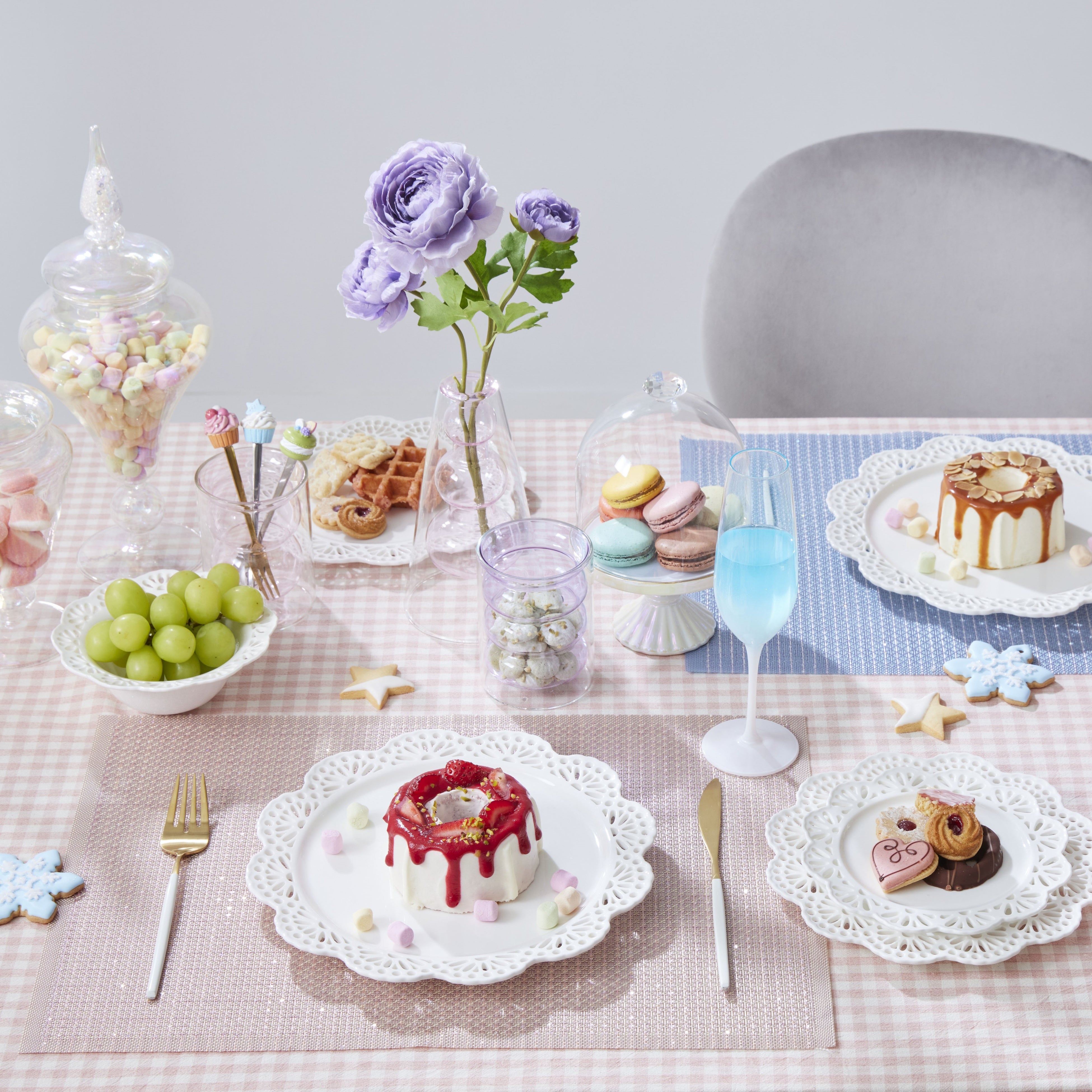 繊細なレース模様にカッティングされたリムのデザインが美しいプレートです。テーブルに1枚あるだけで花が咲いたようにパッとテーブルを明るく彩ってくれます。お料理やスイーツを美しく引き立ててくれるおもてなしにぴったりなアイテムです。