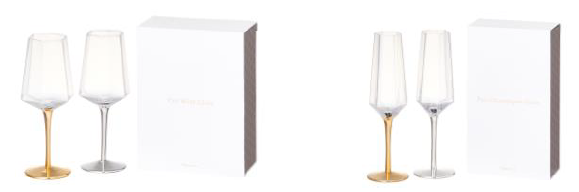 高級感のあるペアのワイングラスとシャンパングラスです。エレガンスな形状が食卓を華やかに演出します。スタイリッシュなボックスに入っているのでギフトにもぴったりです。取り入れるだけでワンランク上のパーティーシーンが完成します。