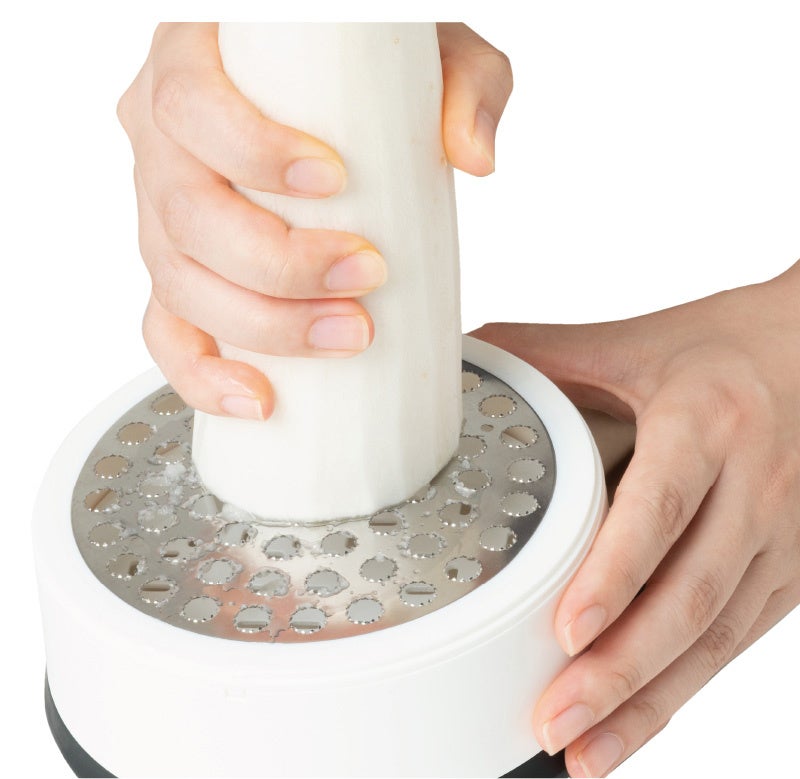 ⑤「おろし器丸形容器付き」は素材を円を描くようにおろすことによって口当たりがまろやかにおろすことができ