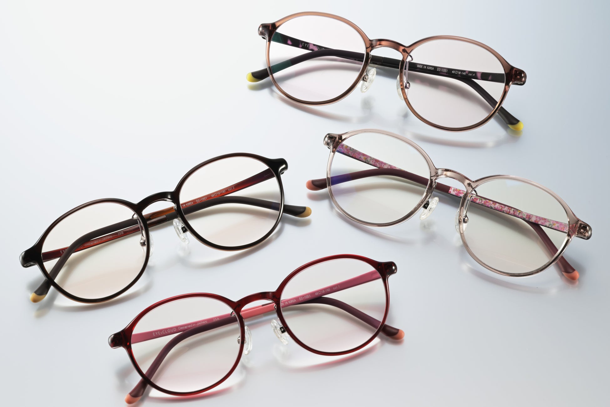 チークとアイシャドウの色を施した、UV・IR・ブルーライトカット機能付きのレンズで、美容効果とまぶしさ対策を実現する理想のメガネ