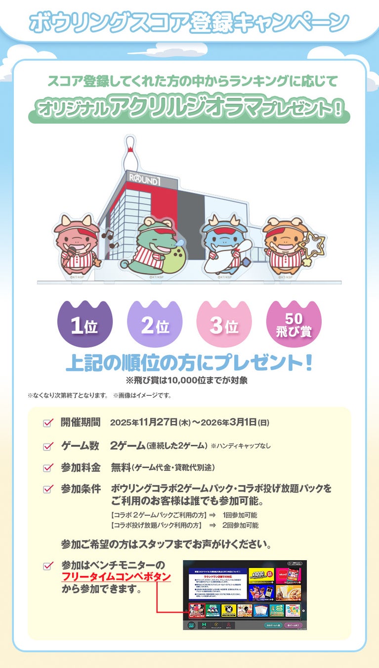 開催店舗:ROUND1全店舗 ※キャンペーンによって該当店舗が異なります。