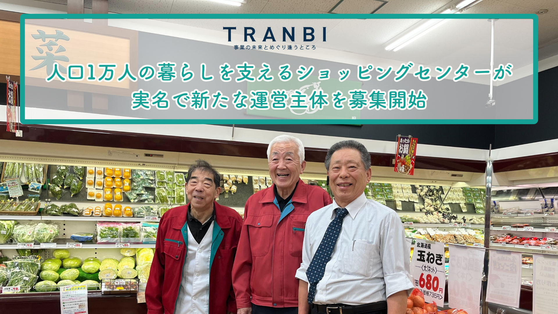 事業承継・M&Aマッチングプラットフォーム「TRANBI(トランビ)」を運営する株式会社トランビ(本社:東京都港区、代表取締役:高橋聡)は、島根県奥出雲町で30年にわたり地域住民の食を支えてきたショッピングセンター「横田蔵市」(運営:協同組合横田ショッピングセンター、代表:安郷弘泰)が、実名掲載の形で承継先募集を開始したことをお知らせいたします。