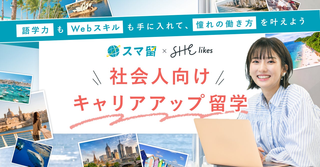 SHElikesとスマ留が協業し、「社会人向けキャリアアップ留学プラン」の販売を開始