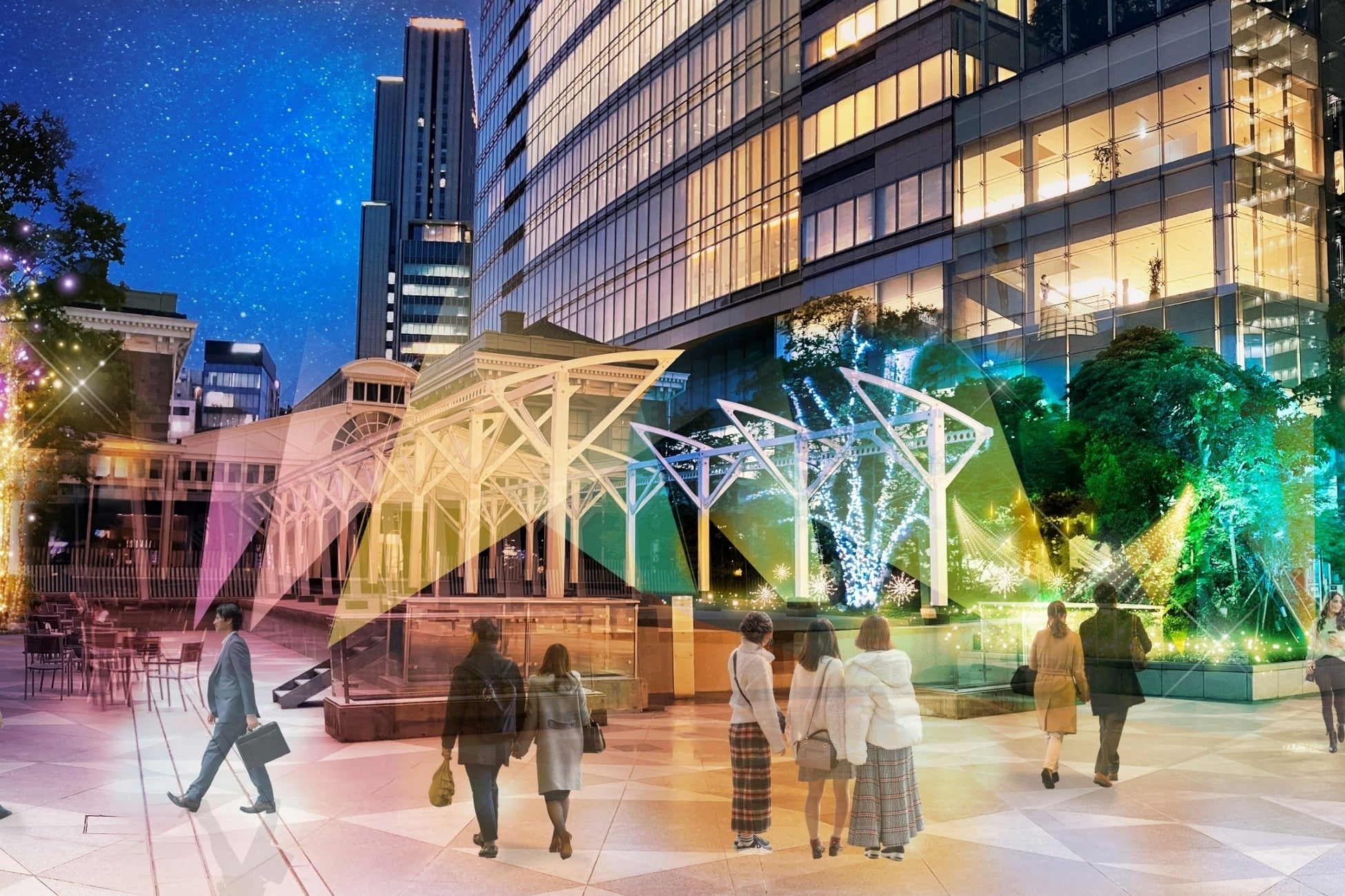 未来と歴史が融合する汐留シオサイト1区B街区のウィンターイルミネーションを施工/日本の鉄道発祥の地を10色の光のうつろいが優しく包み込む