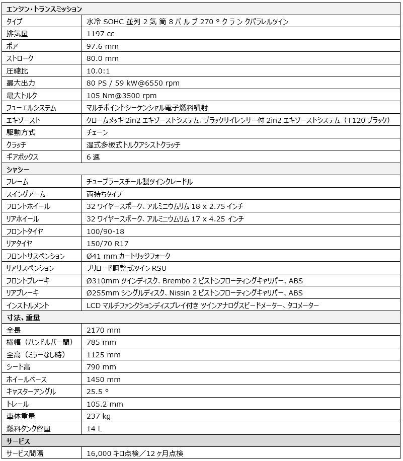 また、T120シリーズには100種類以上のトライアンフ純正アクセサリーが用意されており、ライダーは自分のバイクを個性的にカスタムすることができます。