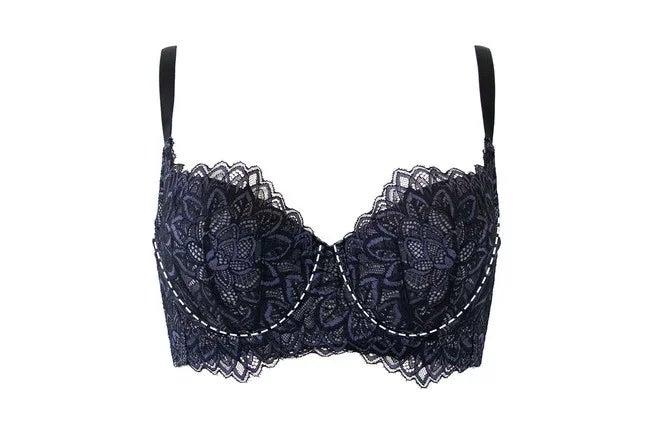 「ハリジェンヌ®」は、バストを水平に持ち上げて高さとボリュームをもたせる、バルコニースタイルのブラジャー。深いカップとあえて幅を狭くしたワイヤー、さらにカップとカップの間の「前中心」を高く設計することで、下からバストをグイッと持ち上げます。