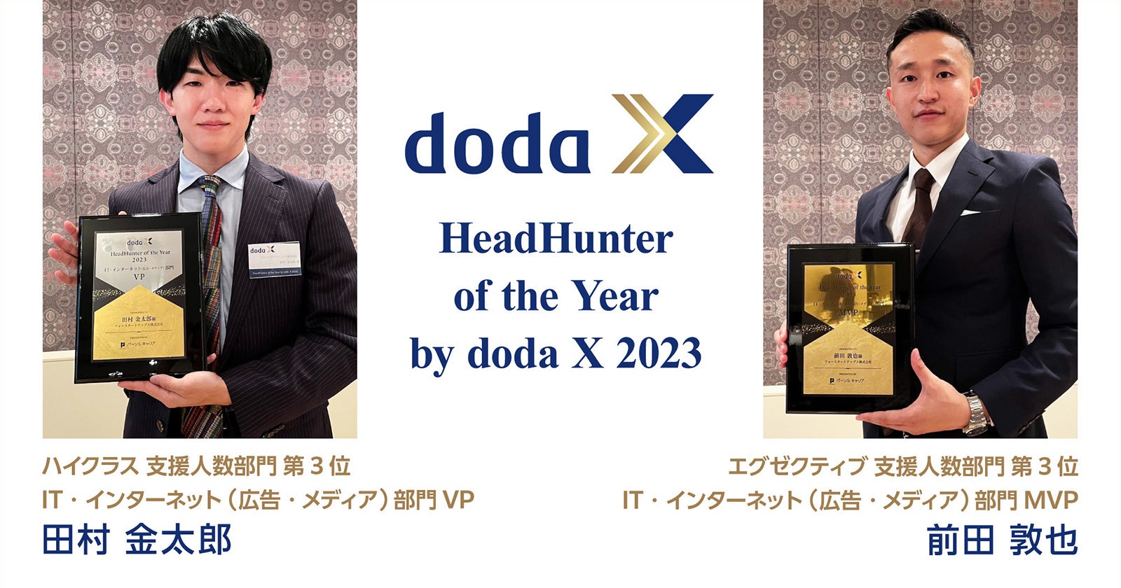 「HeadHunter of the Year by doda X 2023」にて、当社ヒューマンキャピタリスト前田 敦也と田村 金太郎がW受賞いたしました