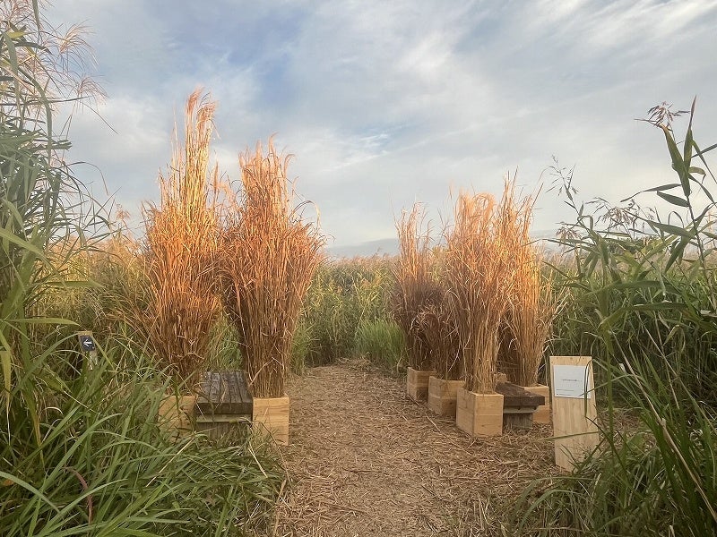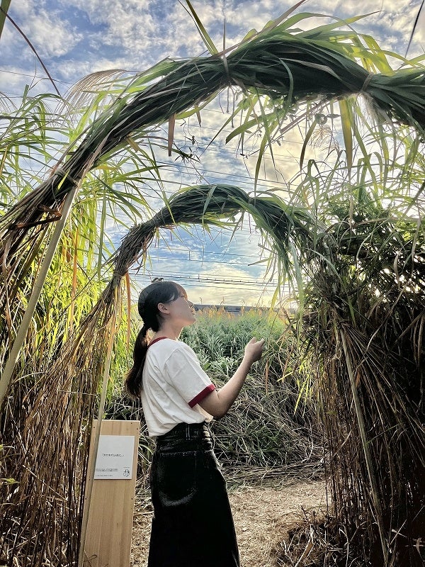 この美術館は今回で3年目。小径の中には、様々な形のオギの風景を切り取るフォトフレームなどを設置しています。オギのオブジェなど新たな展示物が加わり、今までと異なった視点で植物を感じられるようになりました。特に新設の「ささらをぎ館」では、外来種と共存する多様な植物に焦点を当てた展示となっています。