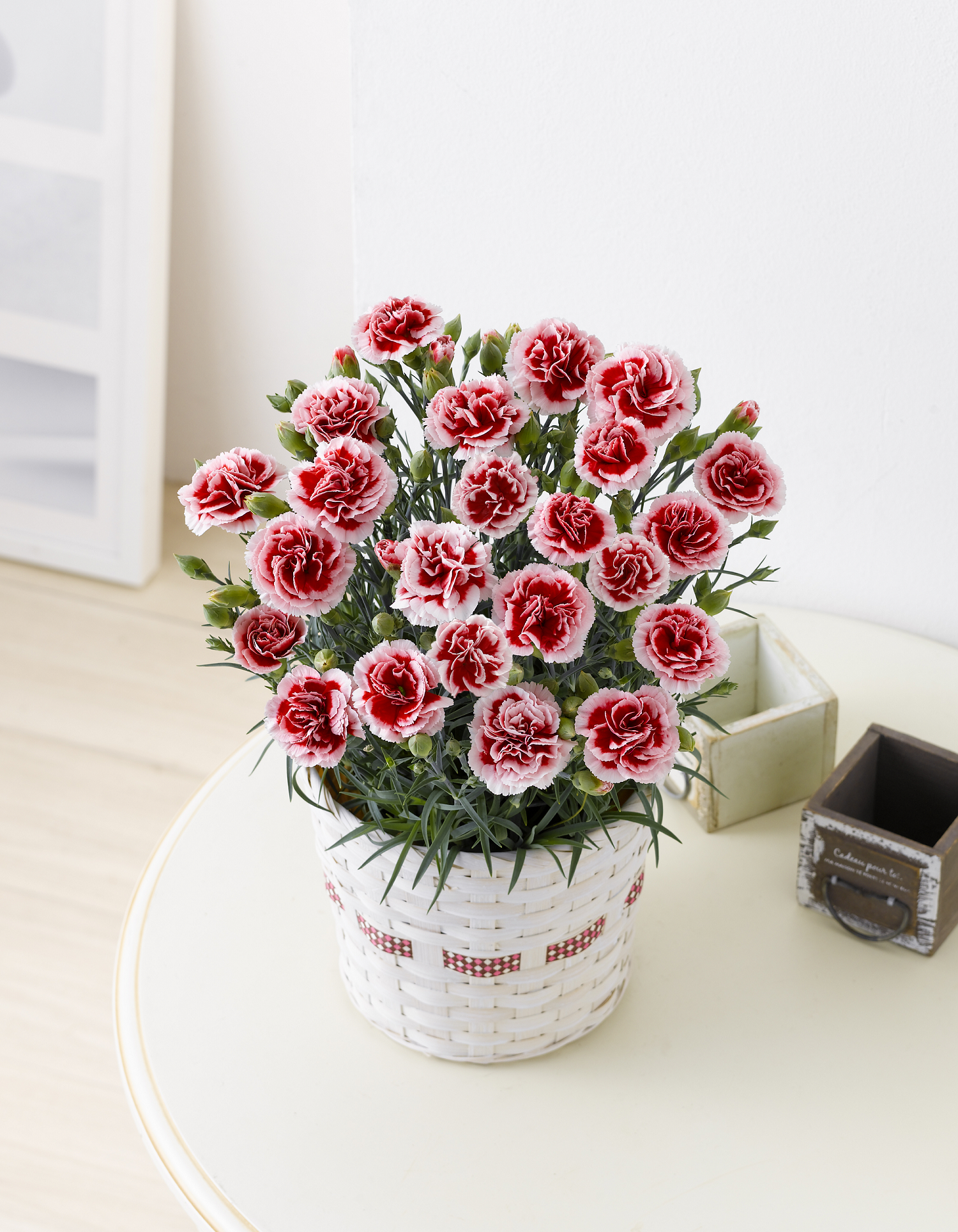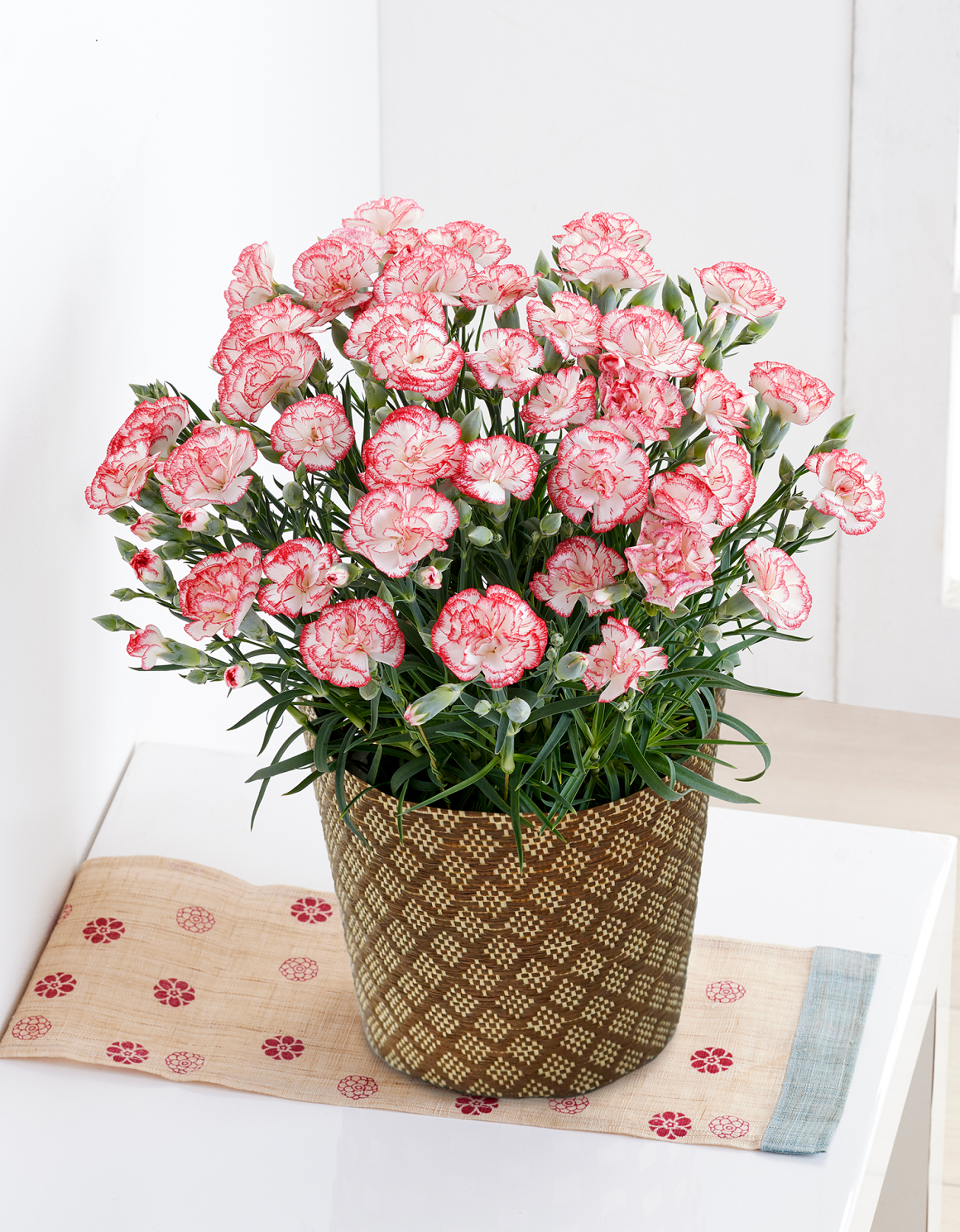 まっしろな花弁にピンクの口紅を差したようなやさしい色のカーネーション