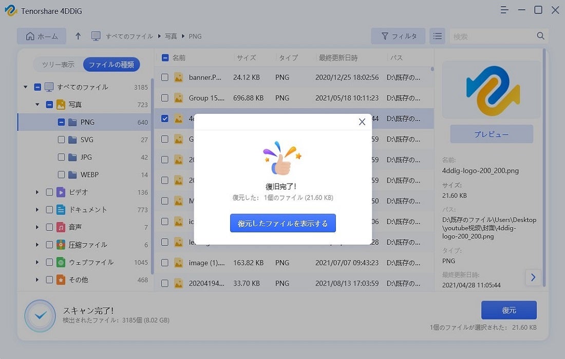 SDカードのデータが消える原因や、取り扱いの注意事項を確認して、安心・安全にデータを復元しましょう。また、Tenorshare 4DDiGを使用すれば、SDカードのスキャン、ファイルの検索、復元が一括で完了します。
