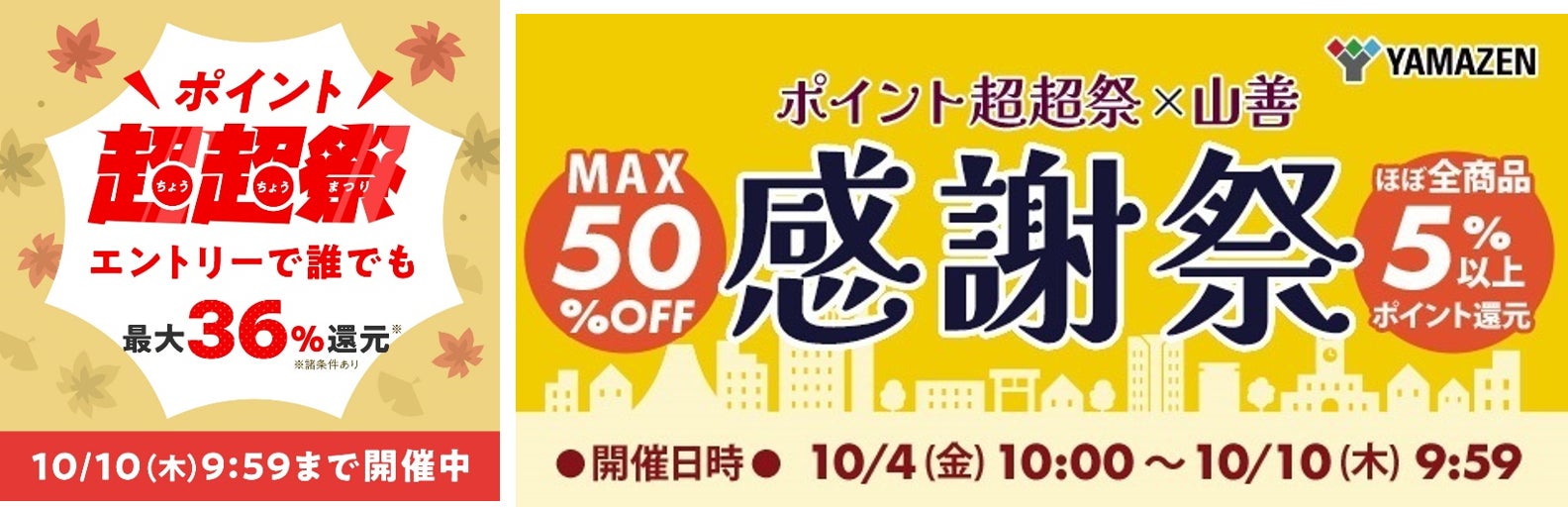 au PAY マーケット、最大36%還元の「ポイント超超祭」で山善ブランドの商品が最大50%割引やポイント還元でおトクに買える「山善 感謝祭」を開催