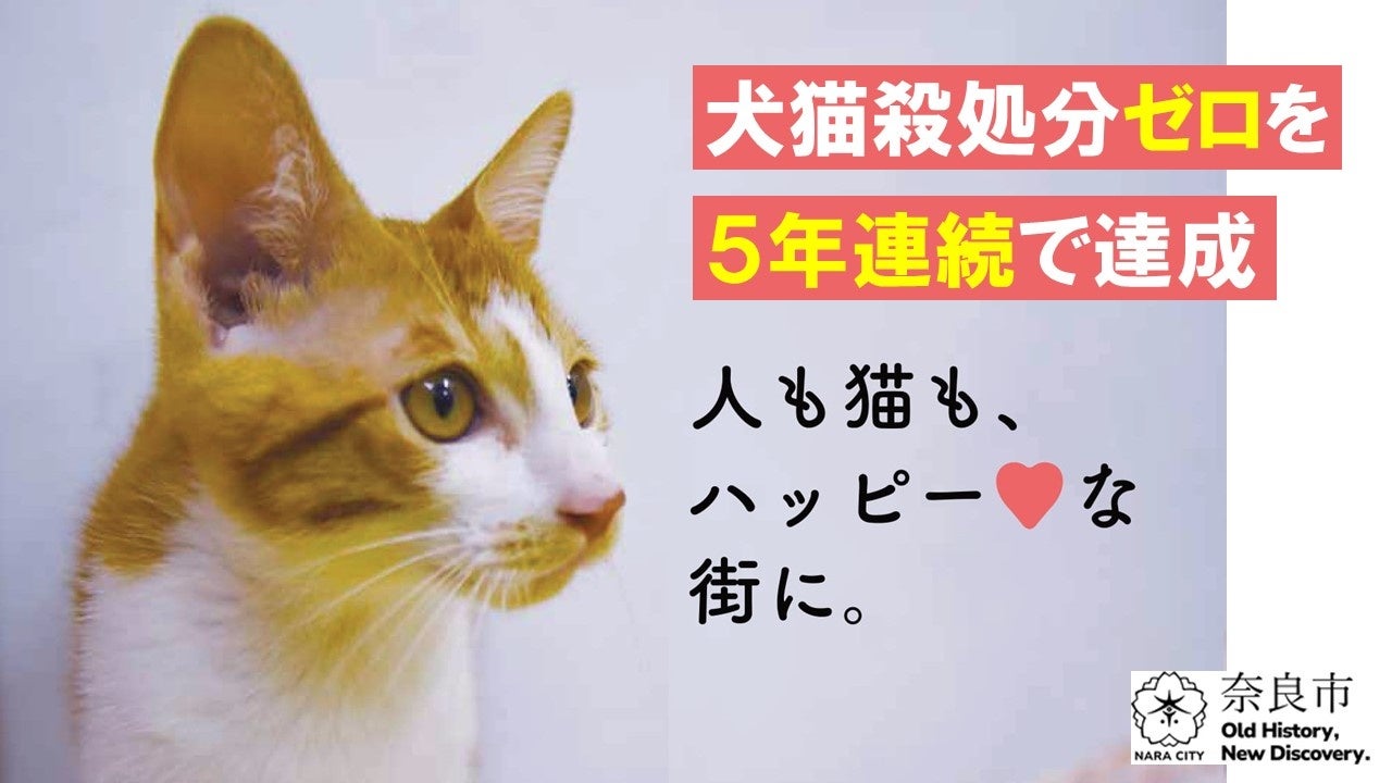 奈良市では「犬猫の殺処分ゼロ」を目標に掲げ、保護犬・保護猫の引取数減少や新たな飼い主への譲渡機会の拡大に向けた様々な取組を推進してまいりました。