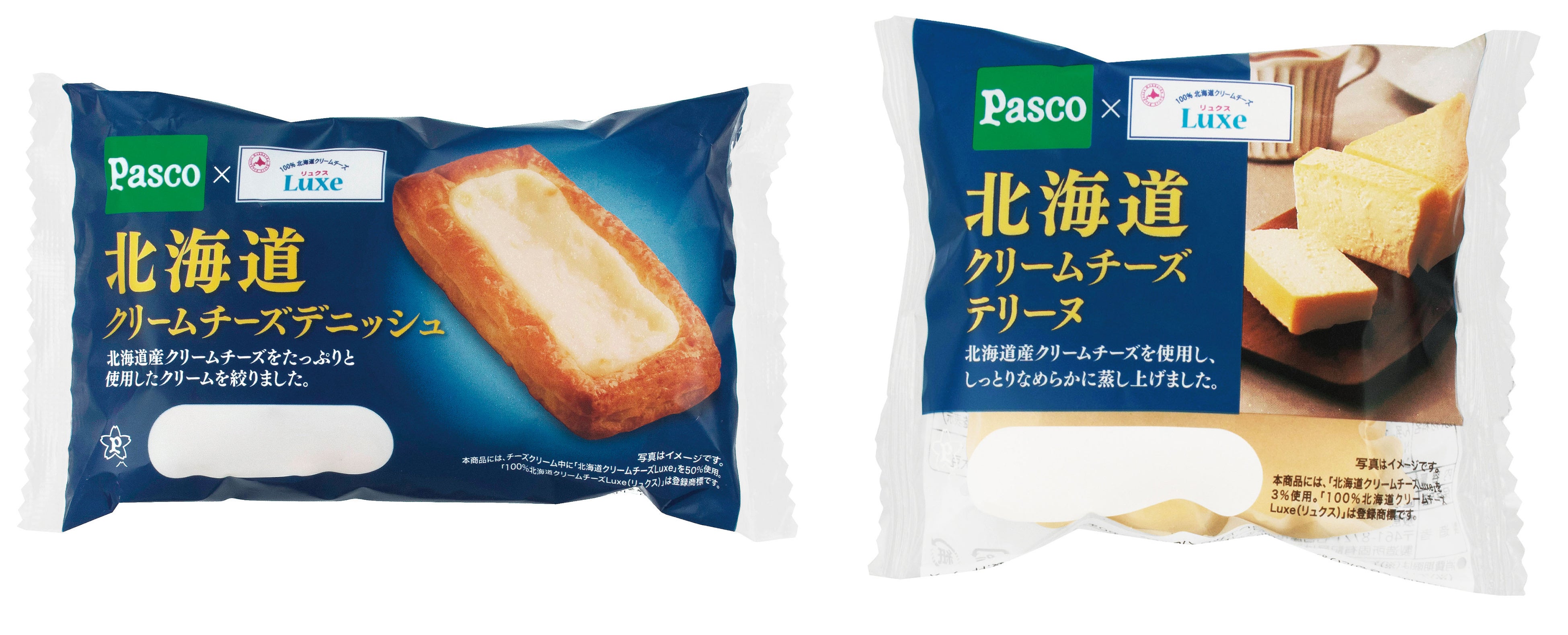 敷島製パン株式会社(Pasco)は、北海道乳業のクリームチーズ「Luxe(リュクス)」を使用した「北海道クリームチーズデニッシュ」、「北海道クリームチーズテリーヌ」の2アイテムを、2023年1月1日より関東、中部、関西、中国、四国、九州地区(※)にて発売します。