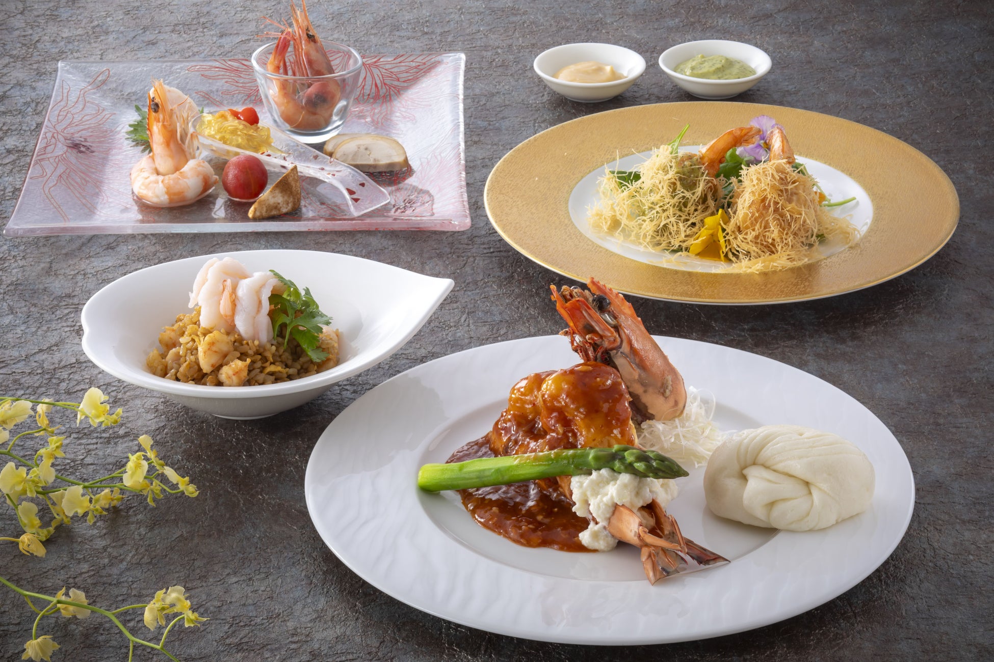 ぷりぷりとしたオマール海老、甘み豊かな車海老、大ぶりのシータイガーなど、多彩で個性豊かな味わいの海老料理が登場する特別ディナー。さらに、ジューシーな黒毛和牛やローストビーフなど、シェフ渾身の肉料理が海老料理と絶妙に絡み合い、贅沢な饗宴を繰り広げます。