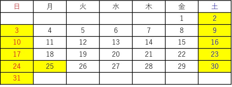 2023年12月2日(土)~12月31日(日)のうち11日間
