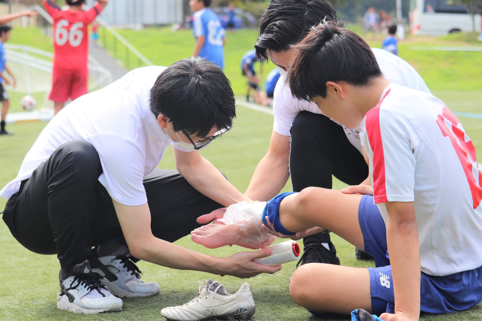 地域のスポーツ大会にも救護トレーナーとして積極的に参加し、選手のサポートを行います。また、監督や応援に来られている家族の方の身体の悩みにも応えられる様に、地域の方とのコミュケーションも大切に致します。