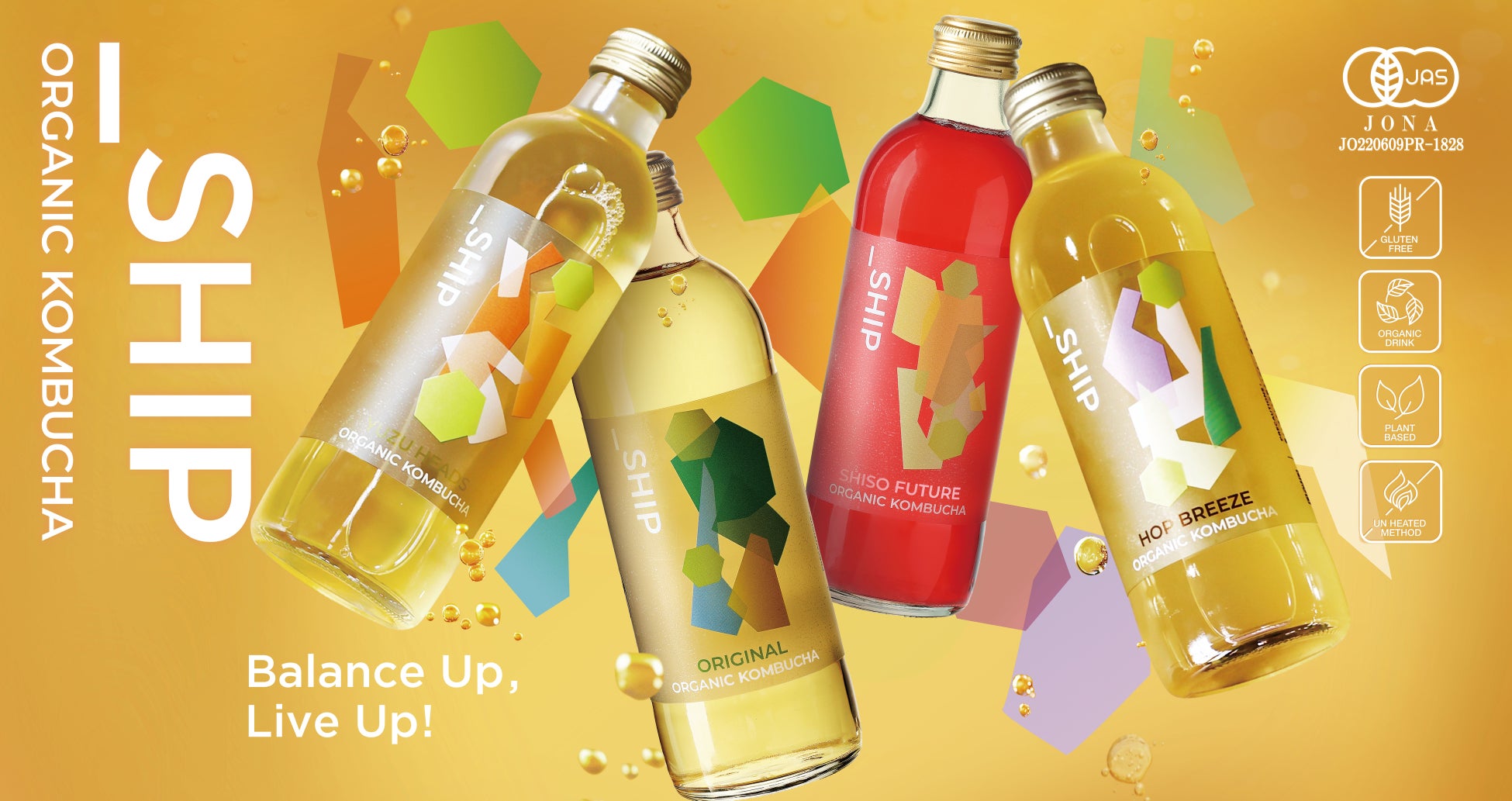 「_SHIP KOMBUCHA」は、果汁・香料・保存料は一切添加せずに、自然栽培などのナチュラルな原材料を使用して醸造しているオーガニック・コンブチャブランドです。2023年にはコンブチャとしては日本で初めて有機JAS認証を取得したほか、世界大会において4フレーバーすべてが賞を受賞しました。日本でも数少ない非加熱製法のコンブチャ専用ブルワリーで、お茶の抽出から発酵、ボトリングまで、職人の手で丁寧に時間をかけて醸造しています。白ブドウや洋梨を思わせるフルーティな酸味と発酵由来のうまみをお楽しみいただけます。