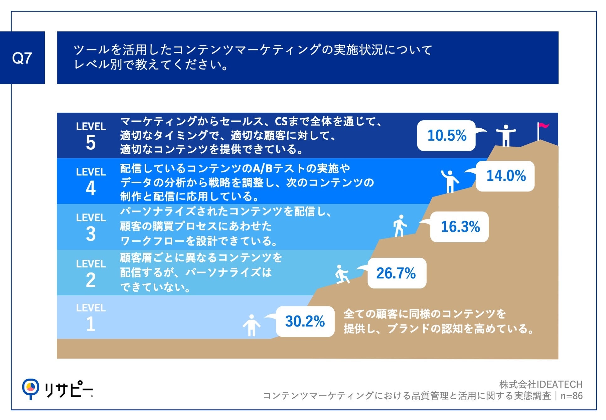 ■ツールを活用したコンテンツマーケティングの実施状況は、「レベル1|全ての顧客に同様のコンテンツを提供し、ブランドの認知を高めている。」が30.2%で最多の結果に