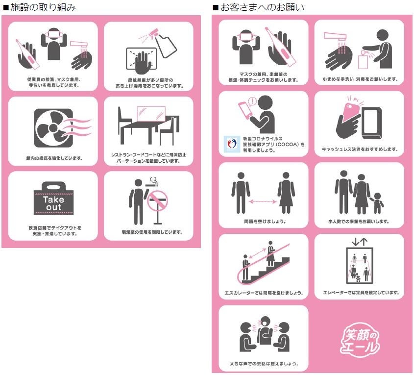 三井不動産グループが運営する商業施設では、新型コロナウイルス感染拡大防止のため下記をはじめとした様々な取り組みを実施しております。