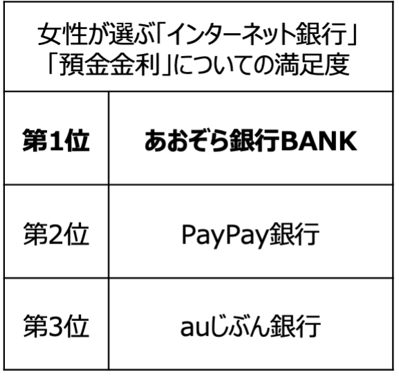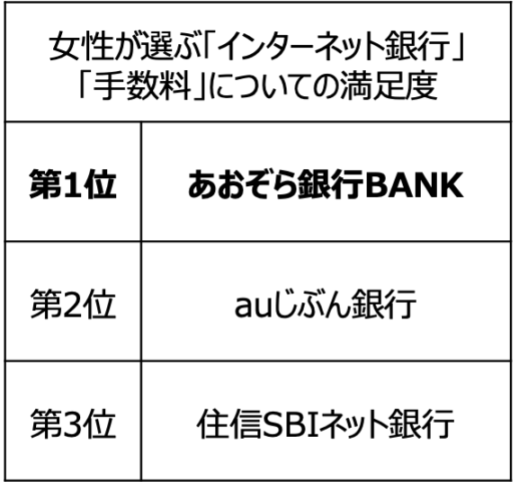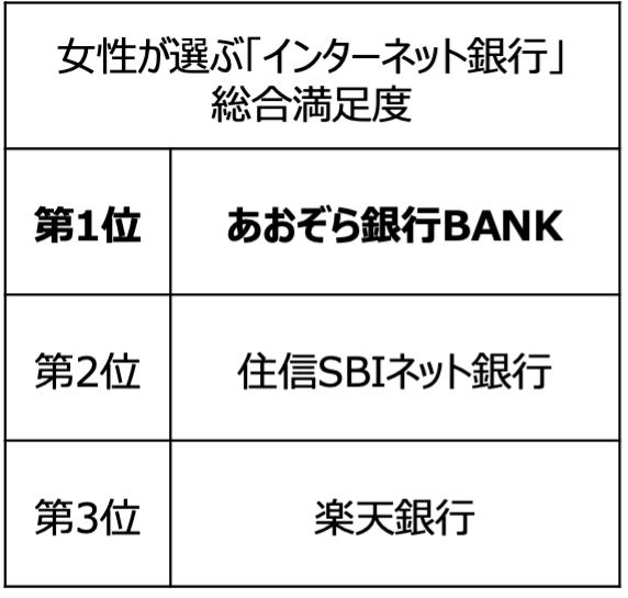 ◆女性が選ぶ「インターネット銀行」ランキング、「あおぞら銀行BANK」が高評価