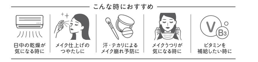新たにビタミンが加わり、美容成分たっぷり配合でメイクの上から角層深くまで素早く浸透。