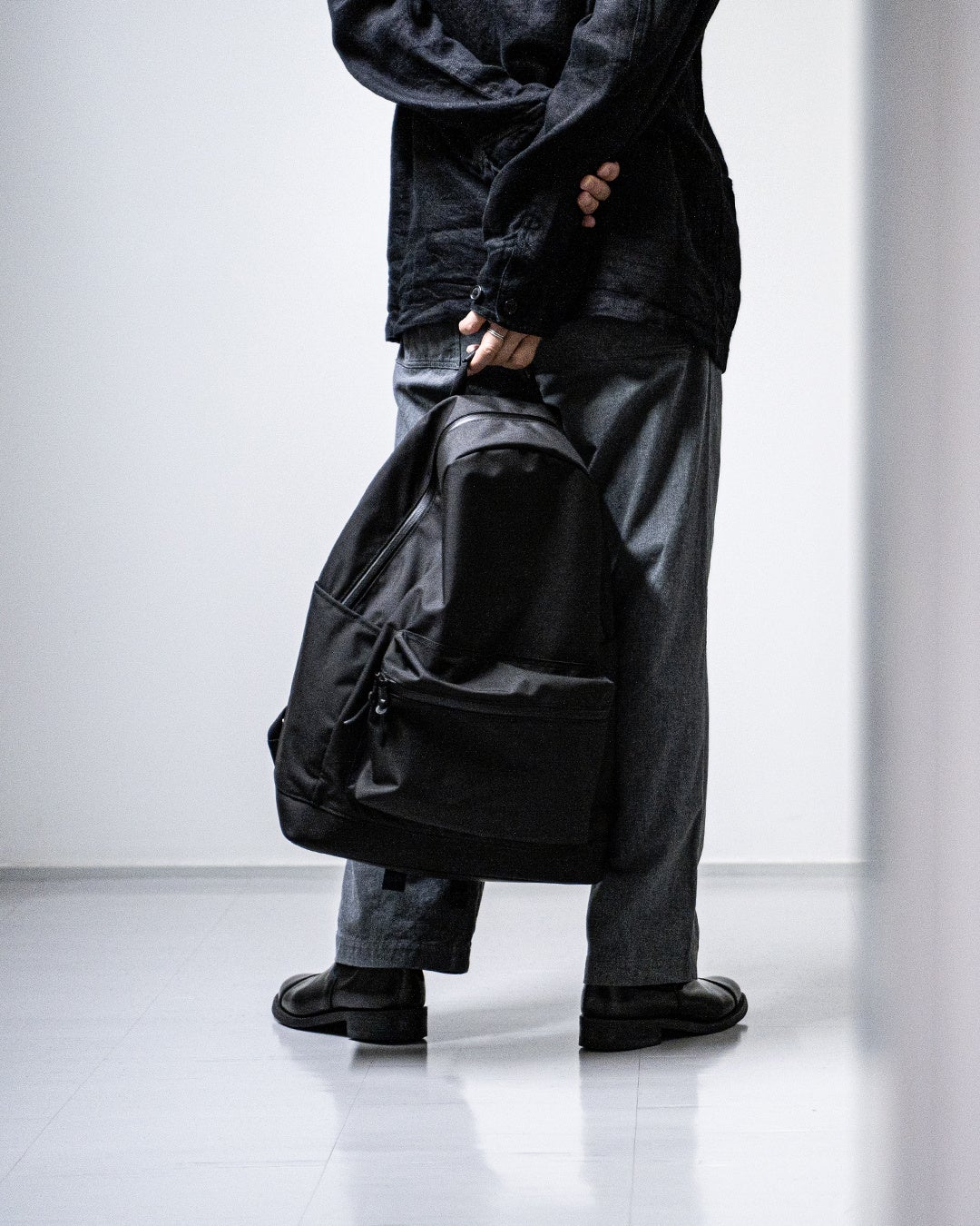 リネン素材や製品染めの服とのコントラストは在りながらもマットな質感が、CONFECTの服との雰囲気を程良く近づけてくれるSTANDARD SUPPLY定番の「CORDURA500」をボディ素材選定。