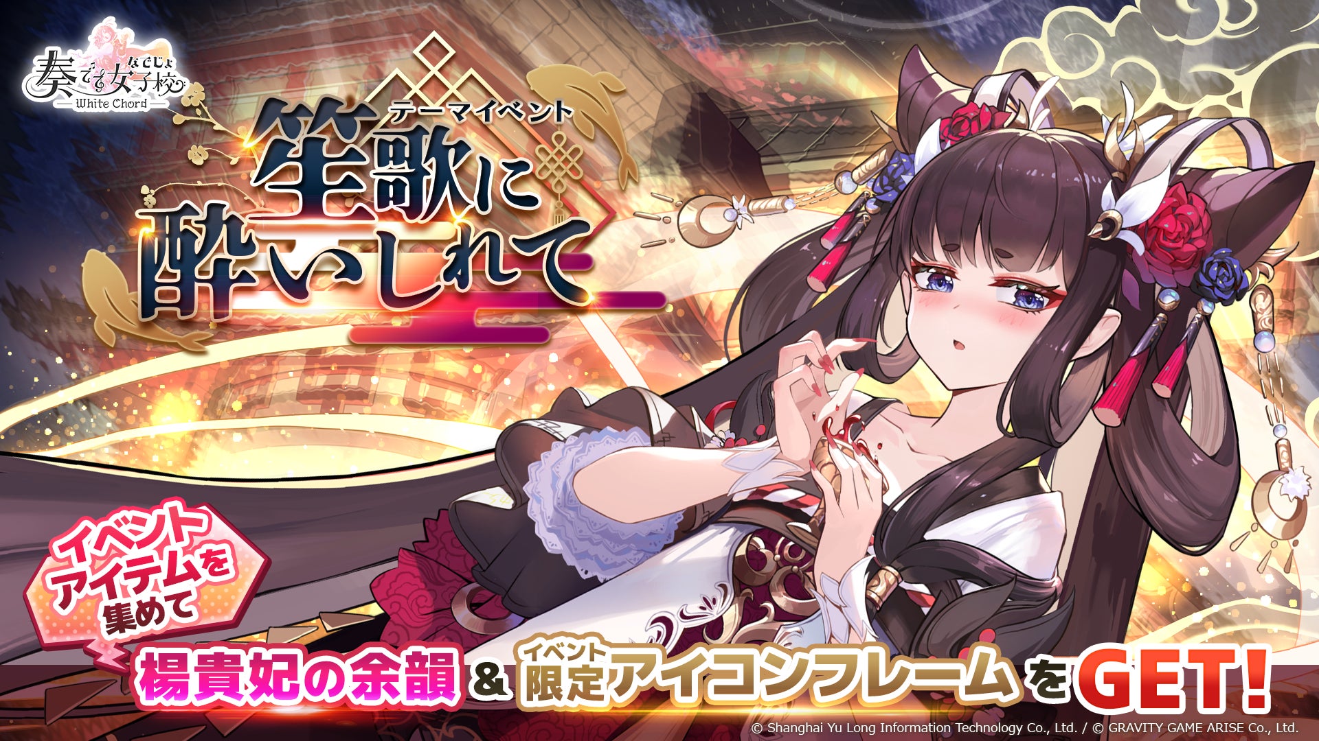 テーマイベント開催期間中は新たな楽姫「楊貴妃」がピックアップガチャ「笙歌に酔いしれて」にて登場いたします。