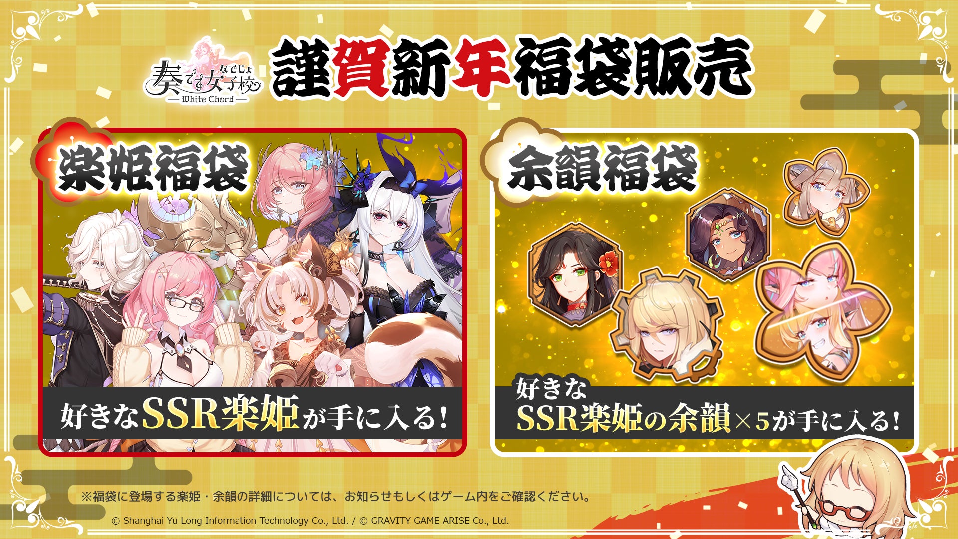 謹賀新年福袋は、お好きなSSR楽姫や余韻を選ぶことができるお得な福袋です。