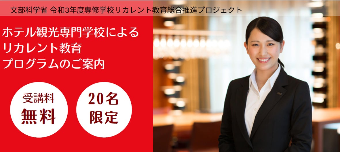 本校では来る1月19日18時30分より、開発したプログラムの授業の様子(科目名:ホスピタリティサービス)をメディア関係者向けに公開を行います、取材に来られる方は、1月18日17時までに、担当までご連絡頂きますようお願い申し上げます。(授業はオンラインで実施するため、オンラインでの取材となります。)引き続き、本校ではコロナ禍で様々な教育活動に制限が生じる中ではありますが、社会人の「学びを止めない」教育環境の確保に尽力してまいります。