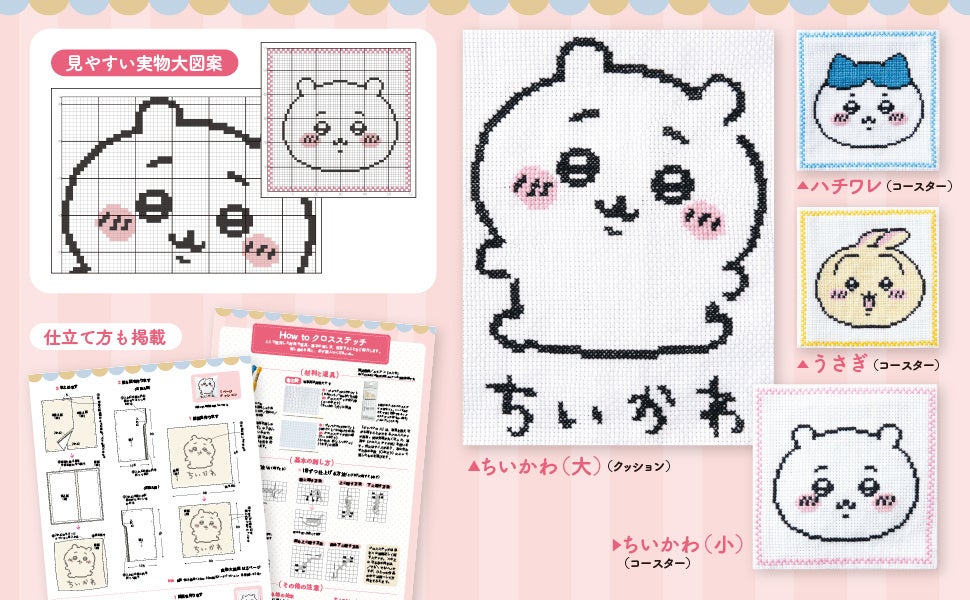 「ちいかわ」となかまたちが実物大クロスステッチ図案に。初心者さんでもできちゃいます!