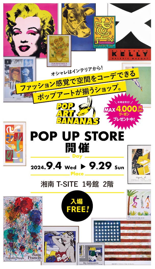 2024年9月4日(水)から2024年9月29日(日)に、湘南T-SITEで『POP ART BANANAS(ポップアート バナナズ)』初となるポップアップを開催します。