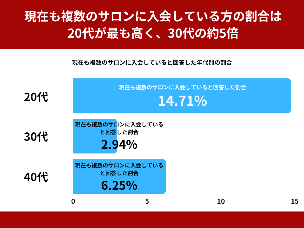 【現在も複数のサロンに入会している方の割合は20代が最も高く、30代の約5倍】
