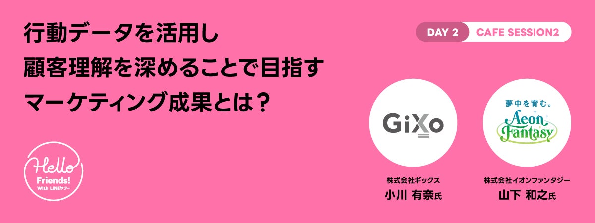 株式会社ギックス(本社:東京都港区、代表取締役CEO:網野知博、以下:当社)は、LINEヤフー株式会社が主催するビジネスイベント「Hello Friends W!th LINEヤフー」にて、登壇・出展・スタンプラリー企画協力を通じて、当社の提供するマーケティングツール「Mygru(マイグル)」を活用した顧客理解の取り組みを紹介いたします。