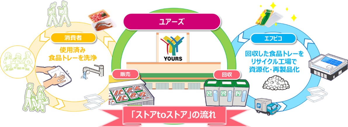 株式会社エフピコ(本社:広島県福山市、代表取締役会長:佐藤 守正、以下「エフピコ」)と株式会社ユアーズ(本社:広島県広島市、代表取締役社長:根石 紀雄、以下「ユアーズ」)は、持続可能な社会の実現を目指し、ユアーズの合計26店舗において、お店を発着点とした「ストアtoストア」の水平リサイクル※1を強化することをお知らせいたします。