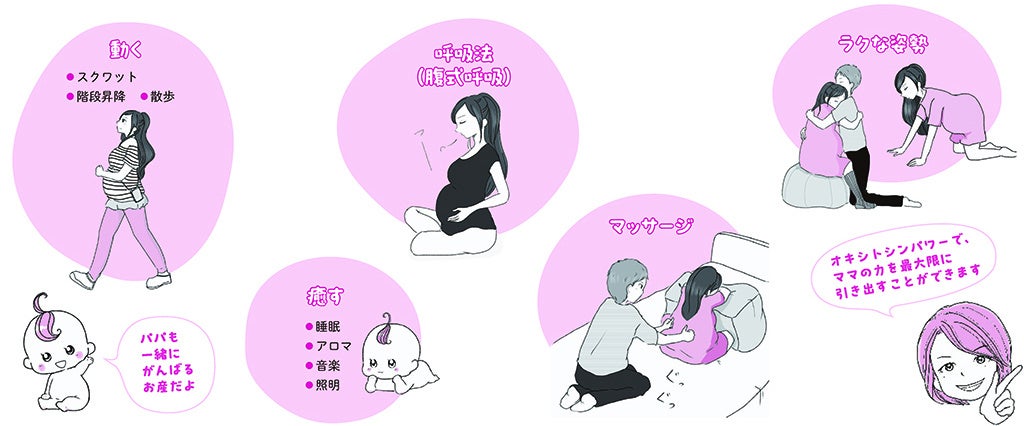 幸せホルモンとして注目されているオキシトシン。そのパワーを最大限にいかしながらの体と心に優しい出産を提案しています。バースプラン、呼吸法、アクティブバース、立ち会い出産など、妊娠・出産まわりの気になるワードもしっかり解説。安心してXdayを迎えることができます。