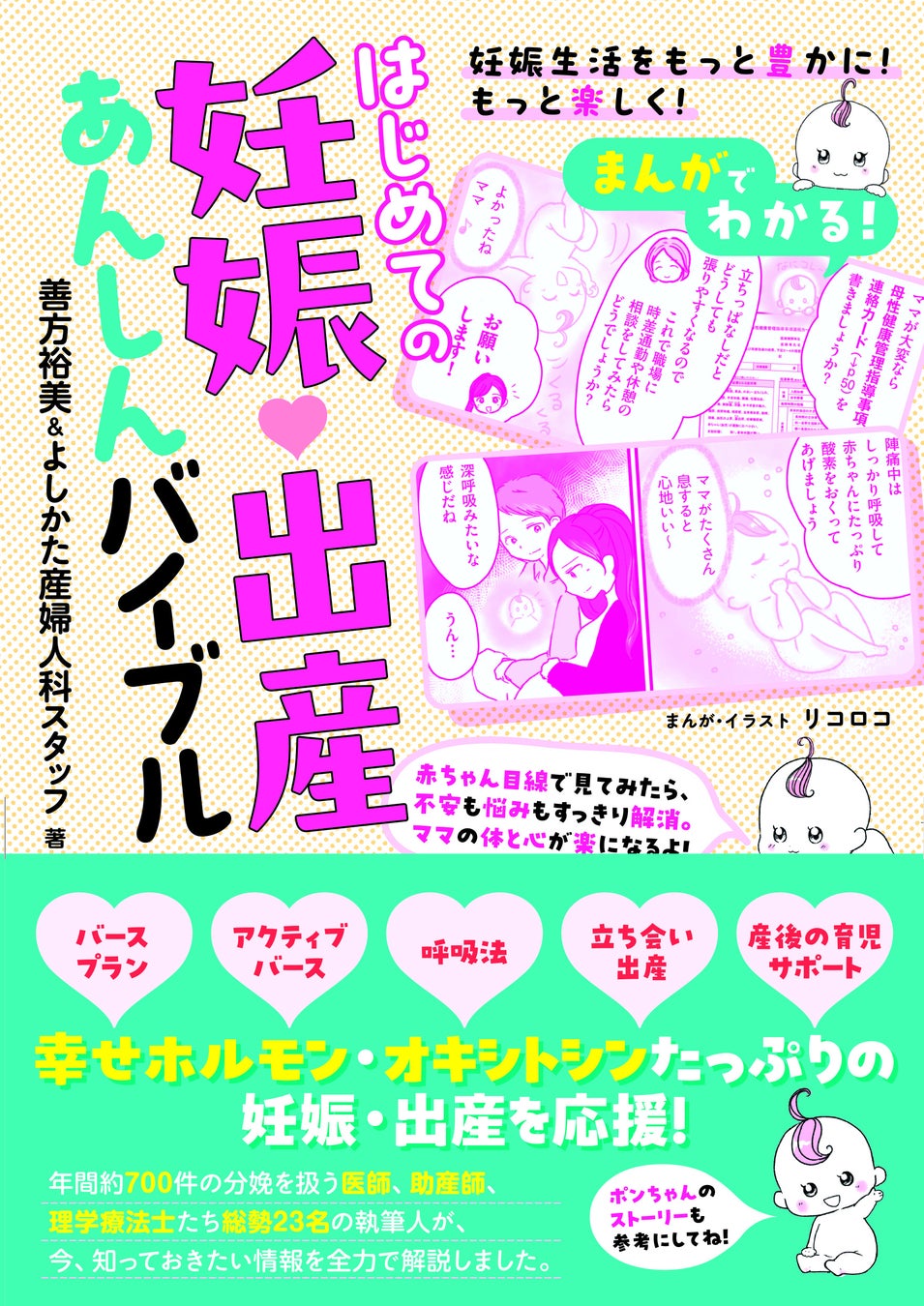著者の善方裕美先生をはじめ、「よしかた産婦人科」の医師、助産師、理学療法士たちが専門領域の立場から、はじめてママパパに知っておいてほしいことを全力で執筆しました。ネット検索よりも必要で正しい最前線からの情報を得ることができます。