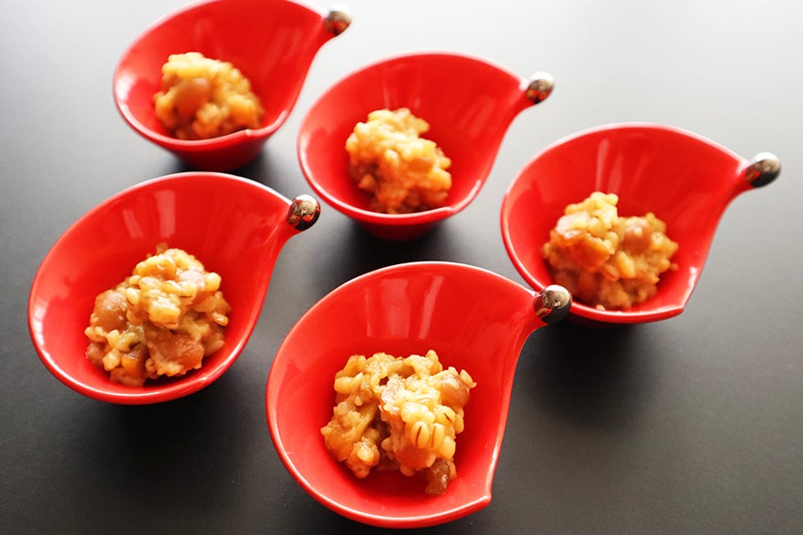 香ばしいほうじ茶で作った茶粥。さらさらっとお召し上がりいただけます。