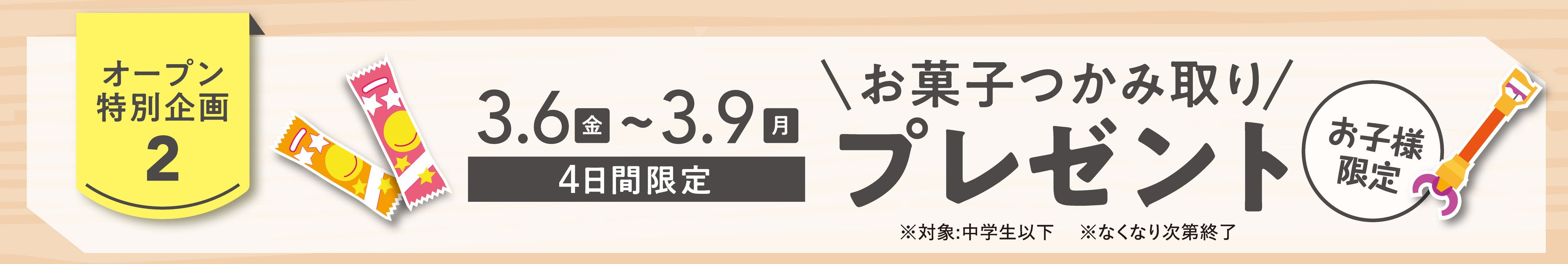 期間中、中学生以下のお客様は、お菓子つかみ取りに参加いただけます。