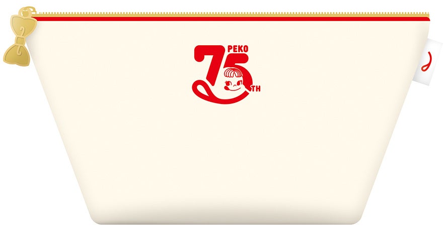 「ペコちゃん75周年」のロゴが入った限定デザインのポーチに、不二家の人気菓子を詰め合わせました。スマイルマークのタグとペコちゃんのリボンをイメージした引手もポイント! 普段使いできるしっかりとした生地のポーチで、母の日ギフトにもおすすめです。