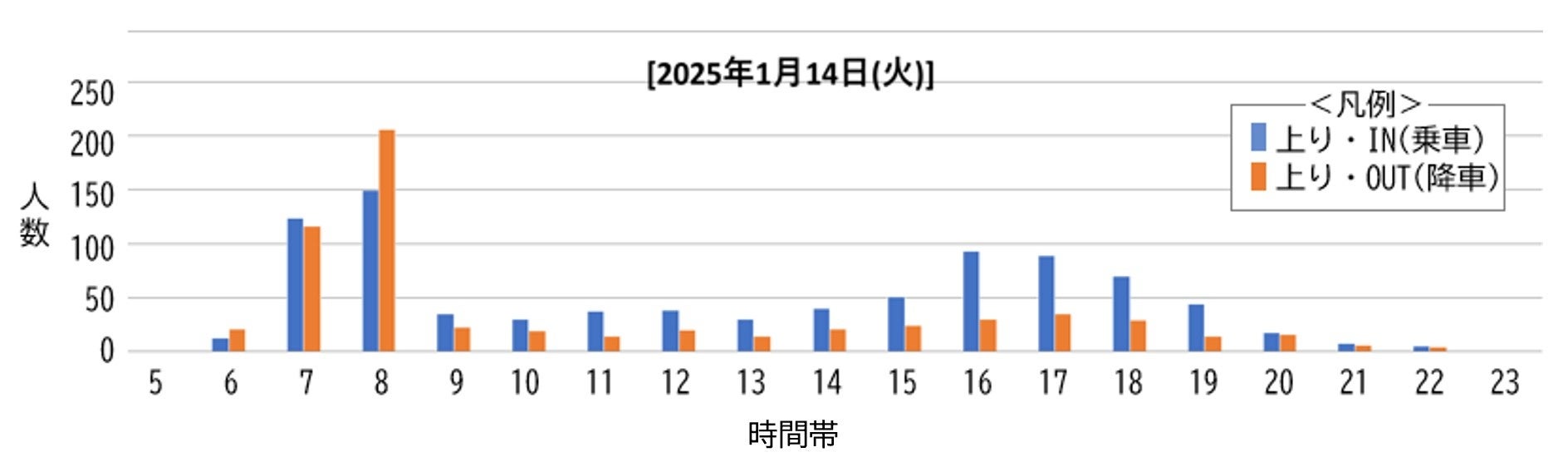 当社は今回、琴電の栗林公園駅構内にカメラを設置し、4週間にわたり、始発から終電までの乗降人数データを取得・グラフ化しました。データ分析の結果、栗林公園駅における夕ラッシュ時間帯の列車利用者数が朝ラッシュ時間帯の半数以下であることが可視化され、夕ラッシュ時間帯の車両数を朝ラッシュ時間帯から減数可能であることを導出しました。また、駅窓口付近に設置したカメラから、利用客の滞留時間データを取得・分析した結果、曜日・時間帯ごとの混雑傾向が明らかとなり、窓口業務の人員配置最適化に活用できることを確認しました。