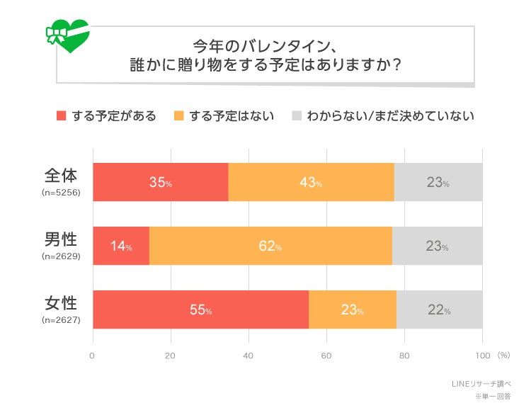 【LINEリサーチ】今年のバレンタインデー、「誰かに贈り物をする予定がある」と回答した女性は半数以上