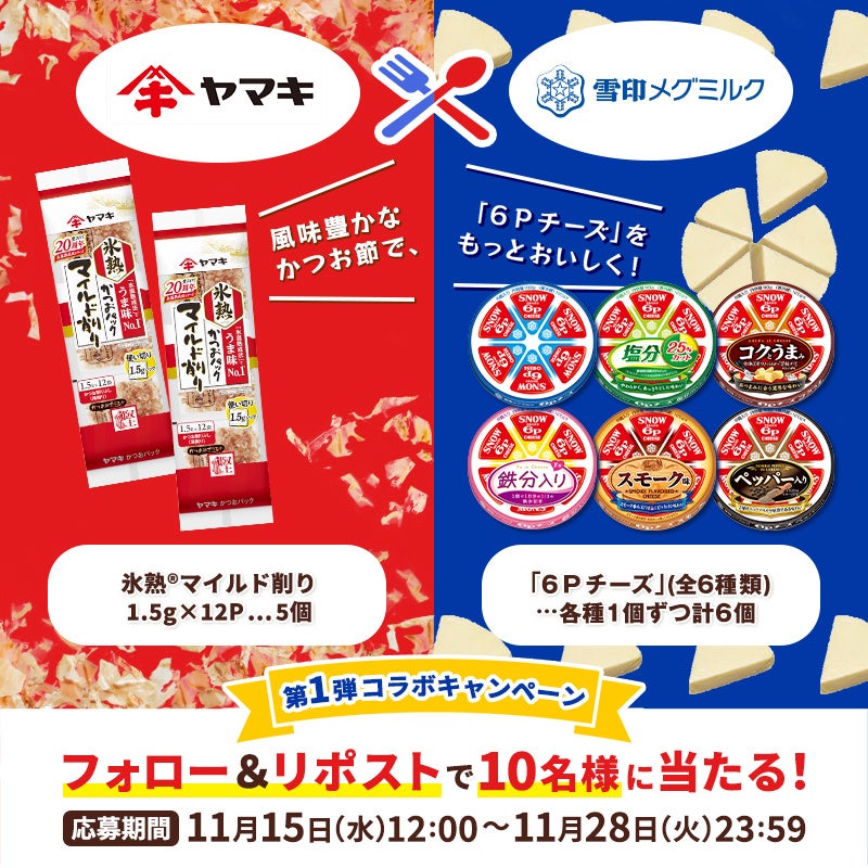 【第1弾】ヤマキ「氷熟®マイルド削り」 × 雪印メグミルク㈱「6Pチーズ」