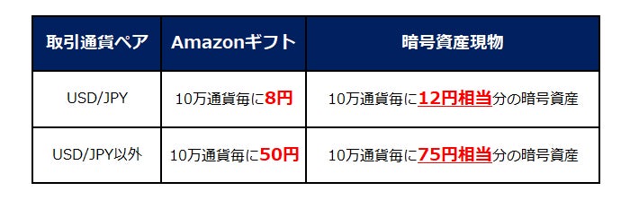 なお、暗号資産をご選択頂くとAmazonギフト券よりもプレゼント金額が50%アップとなります。