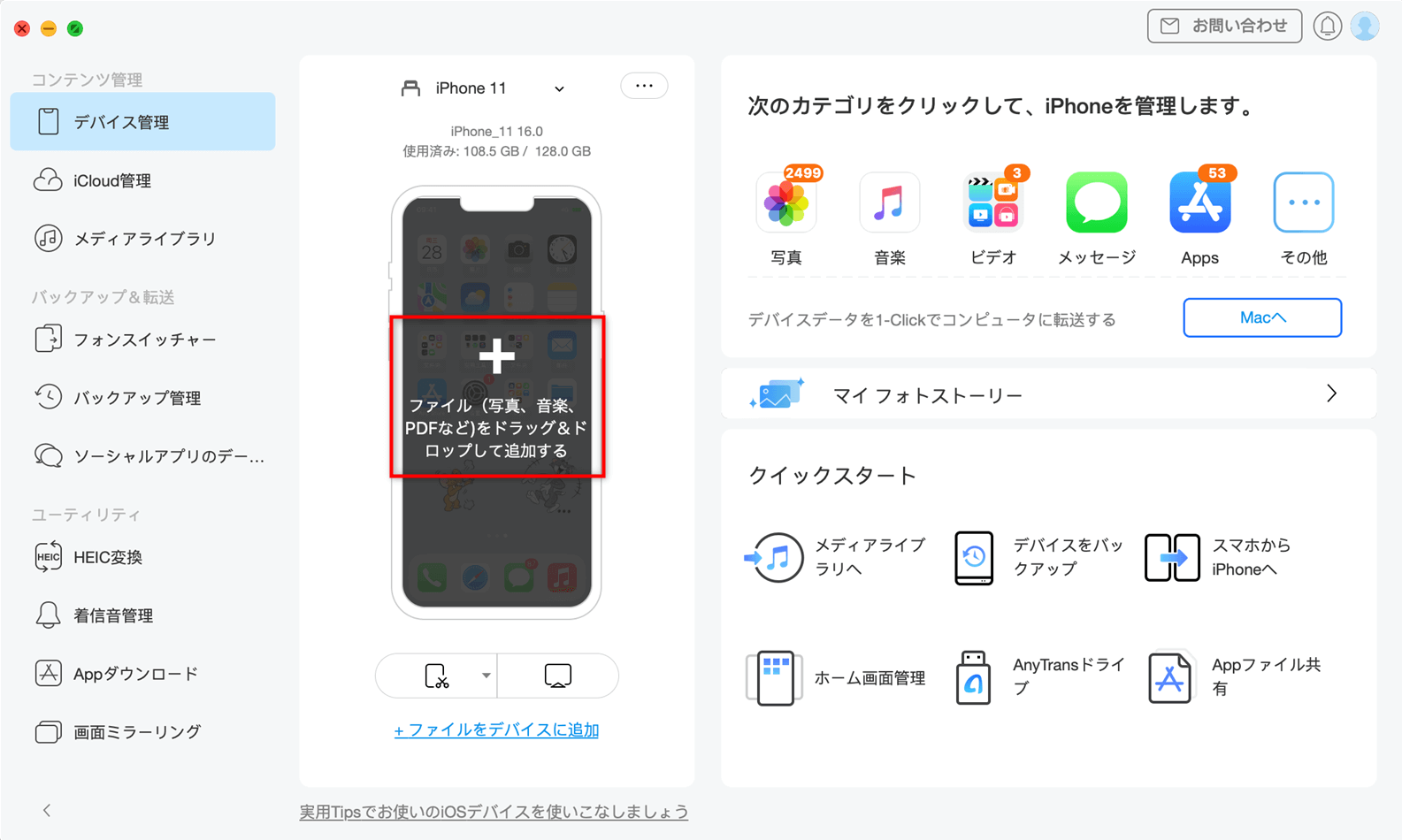 対処法2.AnyTransでMacからiPhoneに音楽を転送する