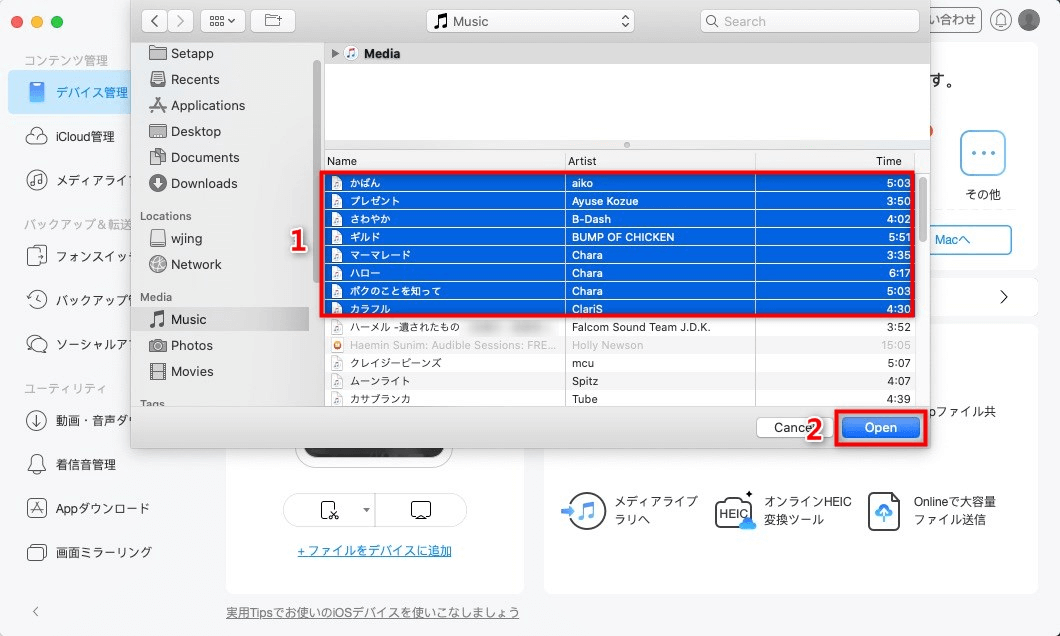 Step 3.iPhoneに転送したい音楽を選択して「開く」ボタンをクリックします。