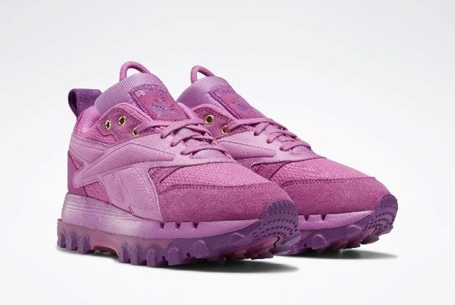 リーボックを代表するクラシカルなモデル「CLASSIC LEATHER(クラシックレザー)」をベースに採用したフットウェアが登場。Cardi Bとのコラボレーションならではの大胆なアレンジを施しています。ボリュームのあるシルエットは、アッパーに特大のベクターグラフィックを施し、ヒール部分には特大のバックヒールタブ、さらに厚みを持たせたラグアウトソールに仕上げるなど、大胆さと華やかさを新たな形で表現しています。