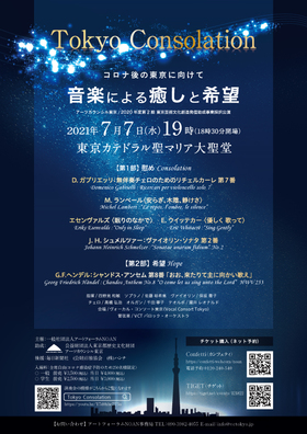 一般社団法人アートフォーラムNOAN『Tokyo Consolation コロナ後の東京に音楽による癒やしと希望を』が2021年7月7日(水)に東京カテドラル 聖マリア大聖堂(東京都文京区)にて上演されます。チケットはカンフェティ(運営:ロングランプランニング株式会社、東京都新宿区、代表取締役:榑松 ⼤剛)にて発売中です。